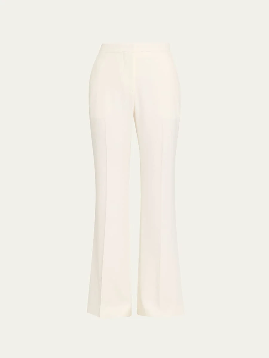 Givenchy trousers in a wool crepe Mid rise sits high on hip Angled side slip pockets Back welt pocket Bootcut legs Full length Hook/zip fly Wool/polyester Made in Italy Online Inquiries: BGS21_BA3GH| Store Inquiries: #5024791