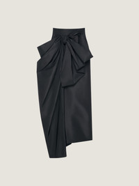 - Midi skirt in polyfaille. - Voluminous bow on the front with draped effect. - Invisible zipped closure on the back. - Slash detailing. - Model measures 5.8 Feet and wears a size 36.
