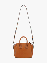 - Cross-body bag. - Color: camel. - Zipper closure. - Silver-finish metal details. - Adjustable and removable shoulder strap. - Two flat pockets and one zippered pocket inside. - Cotton lining.