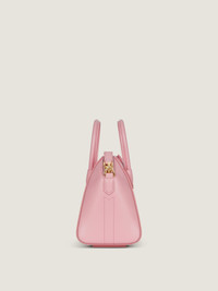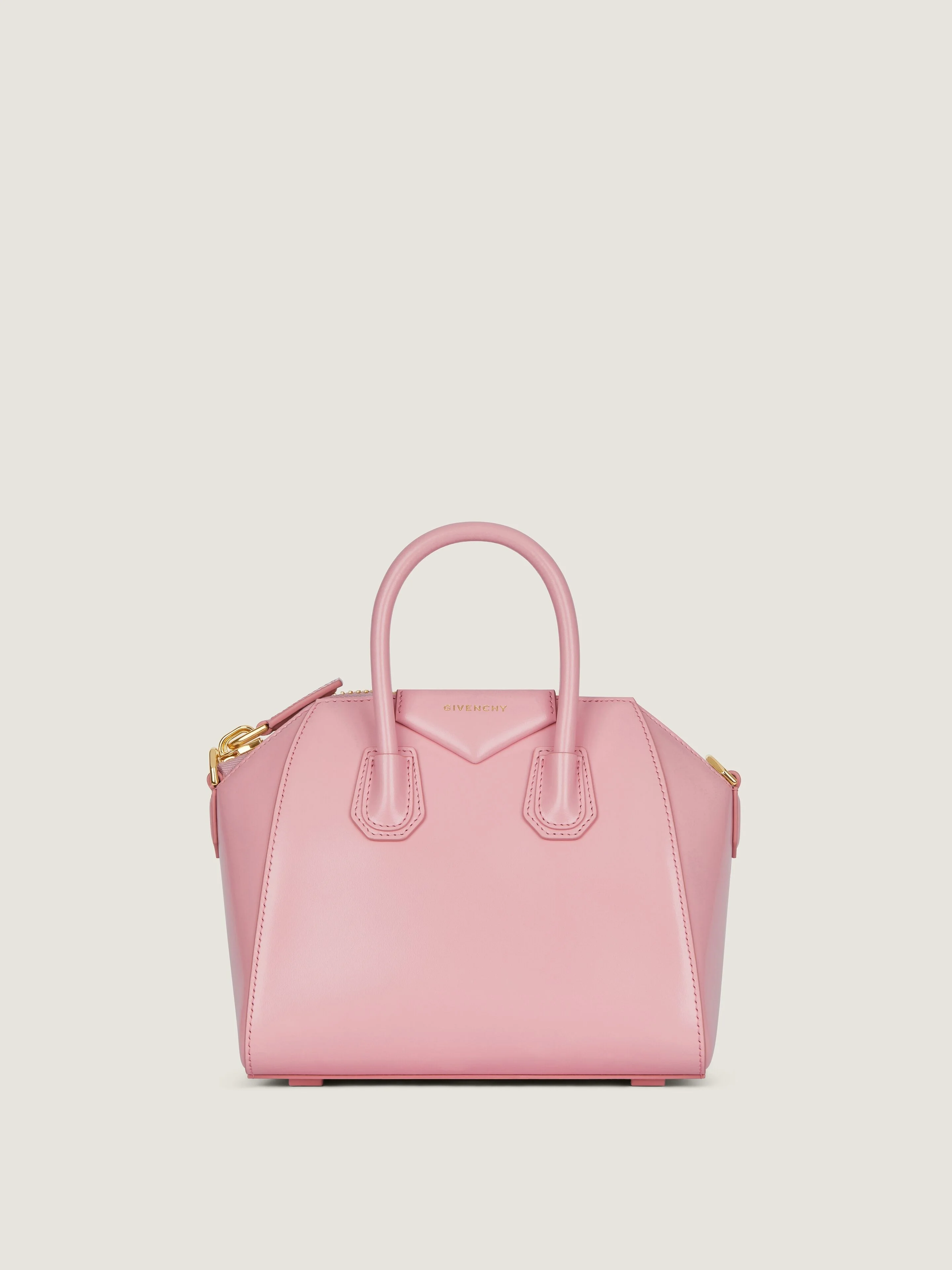 - Mini handbag or crossbody bag in Box calfskin leather. - Antigona line. - Zipped closure. - Leather handles. - Adjustable and removable leather shoulder strap. - Pentagonal patch with golden embossed GIVENCHY signature. - Golden-finish metal details. - One main compartment with two flat pockets and one zippered pocket inside.