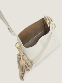 - Mini Hobo bag in luxurious smooth and soft grained shiny leather. - Belted line. - Handle for hand carrying and adjustable strap offering crossbody carrying. - GIVENCHY signature embossed on the front of the bag. - Leather belt adorning the front. - Decorative and removable leather tassel. - Golden-finish metal details. - One main compartment and one flat pocket inside. - Suede lining.
