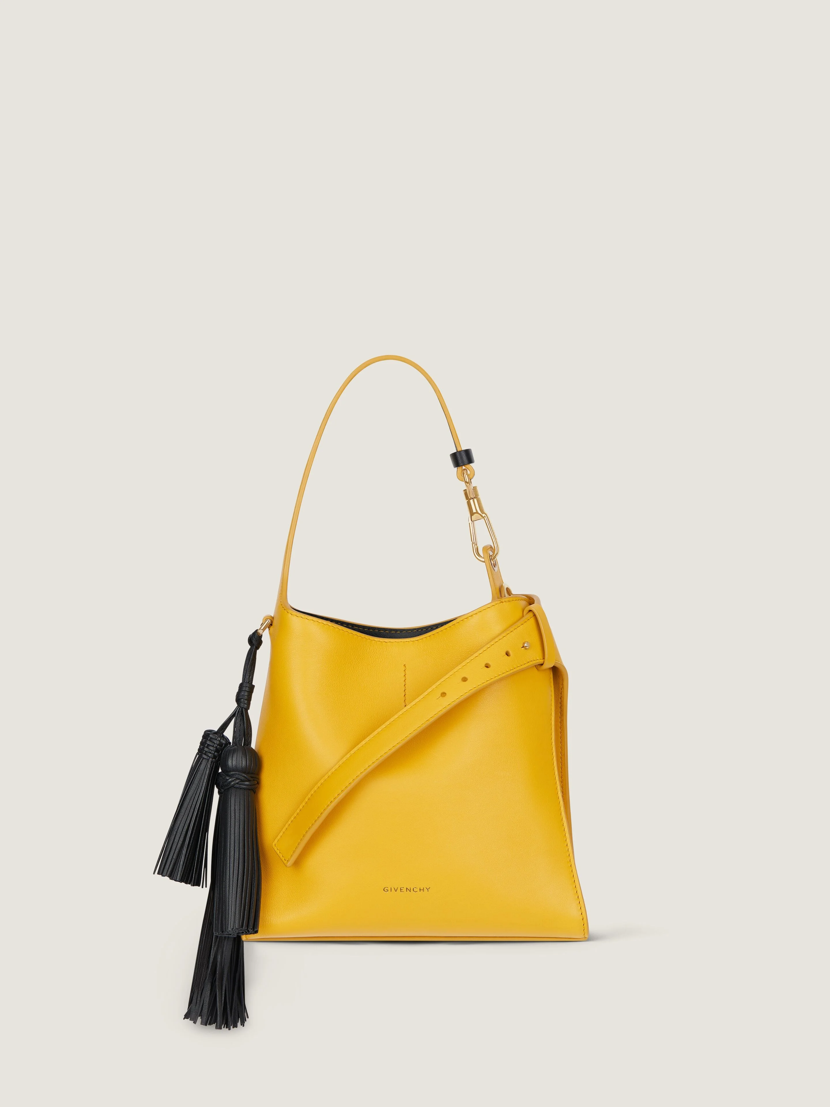 - Mini Hobo bag in luxurious smooth and soft grained shiny leather. - Belted line. - Handle for hand carrying and adjustable strap offering crossbody carrying. - GIVENCHY signature embossed on the front of the bag. - Leather belt adorning the front. - Decorative and removable leather tassel. - Golden-finish metal details. - One main compartment and one flat pocket inside. - Suede lining.