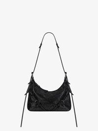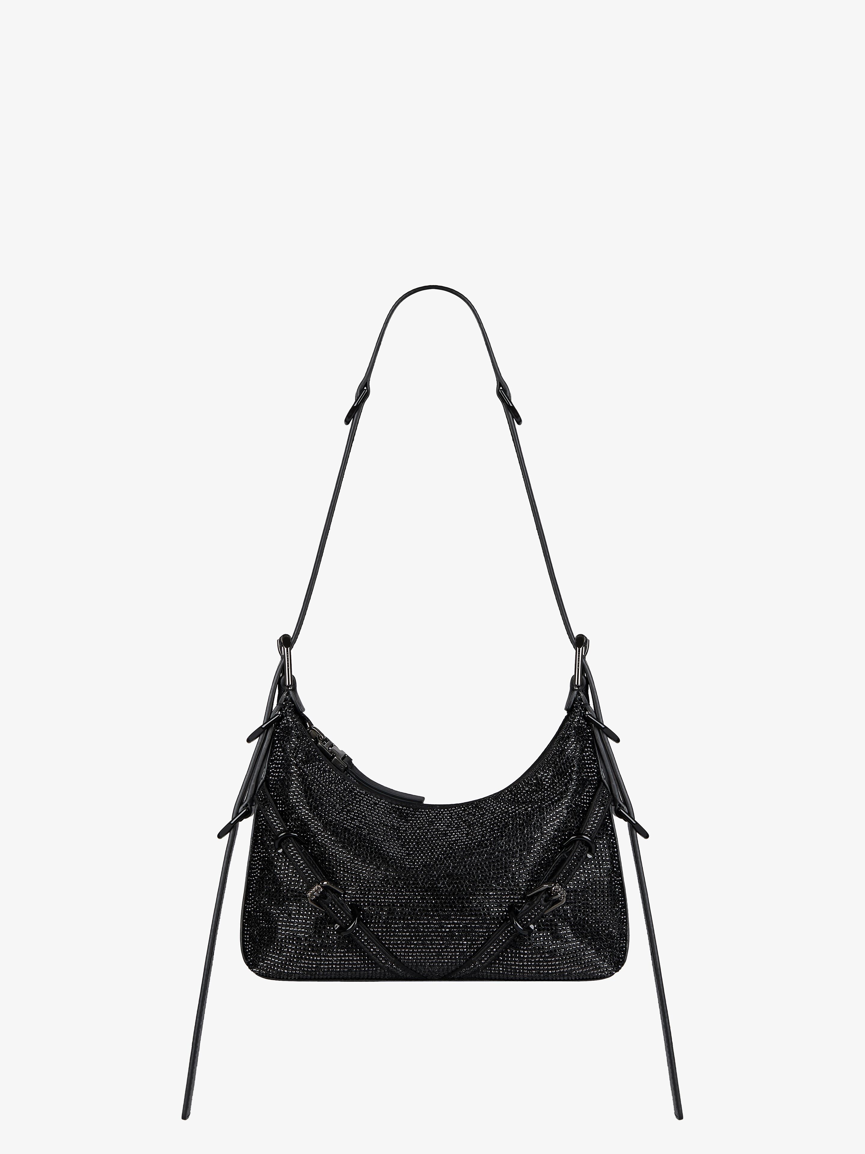 - Mini crossbody bag in satin with strass all-over. - Voyou line. - Adjustable leather shoulder strap offering hand, shoulder or crossbody carrying. - GIVENCHY engraved metal buckles. - Ruthenium-finish metal details./li> - GIVENCHY signature embossed on the top of the shoulder strap. - Zipped closure. - One main compartment. - Adjustable shoulder strap length from 11.9 to 35.6 in. - Minimal drop : 8.1 in and maximal drop : 19.7 in.