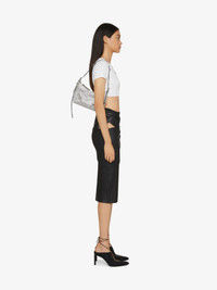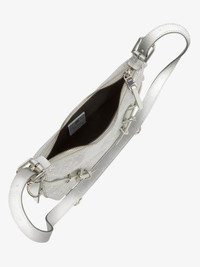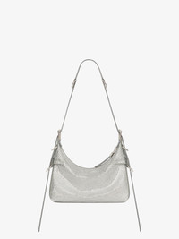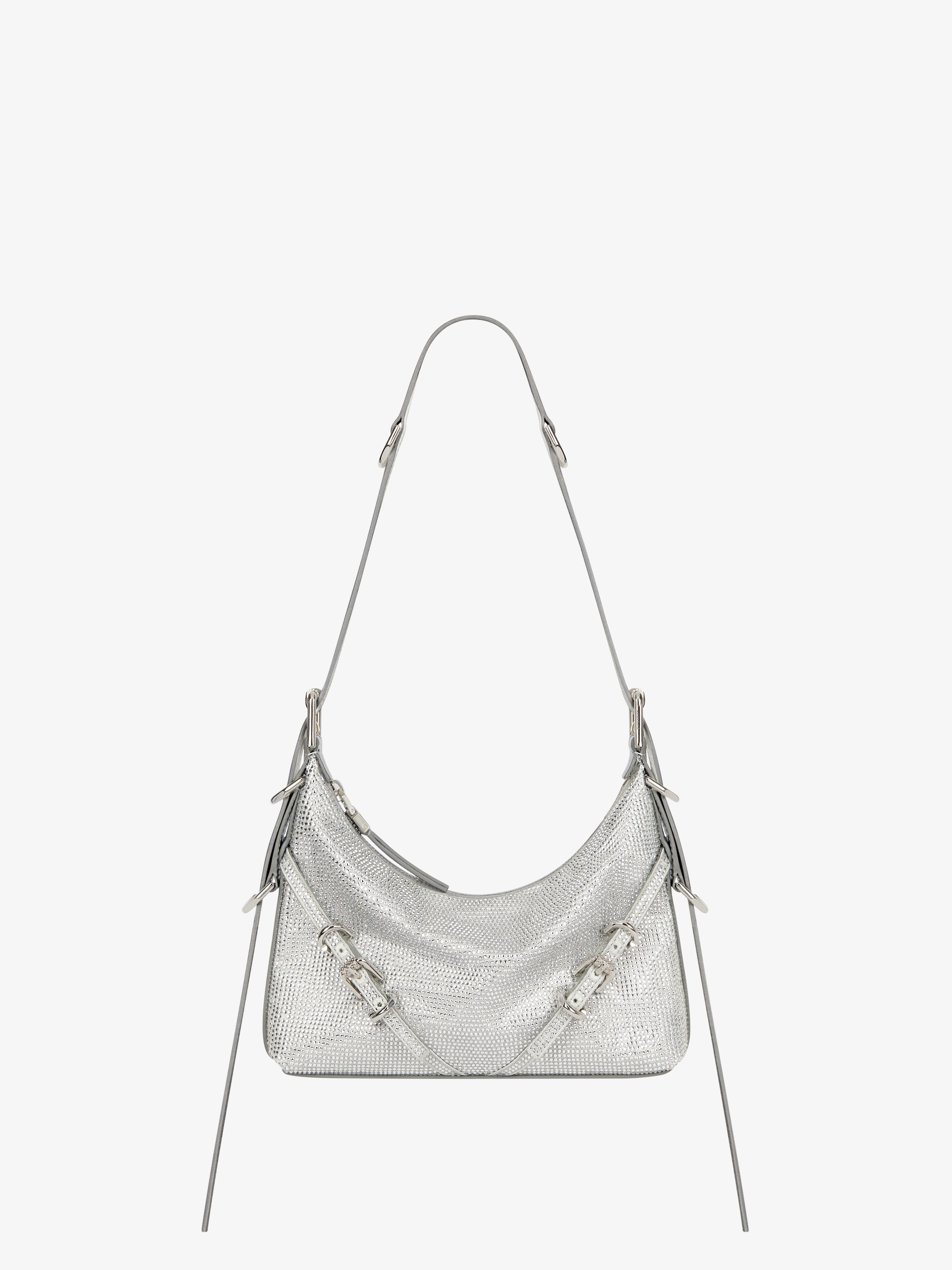 - Mini crossbody bag in satin with strass and leather. - Voyou line. - Adjustable shoulder strap offering hand, shoulder or crossbody carrying. - GIVENCHY engraved metal buckles. - Silvery-finish metal details. - GIVENCHY signature embossed on the top of the shoulder strap. - Zipped closure. - One main compartment. - Adjustable shoulder strap length from 11.9 to 35.6 in. - Minimal drop : 8.1 in and maximal drop : 19.7 in.
