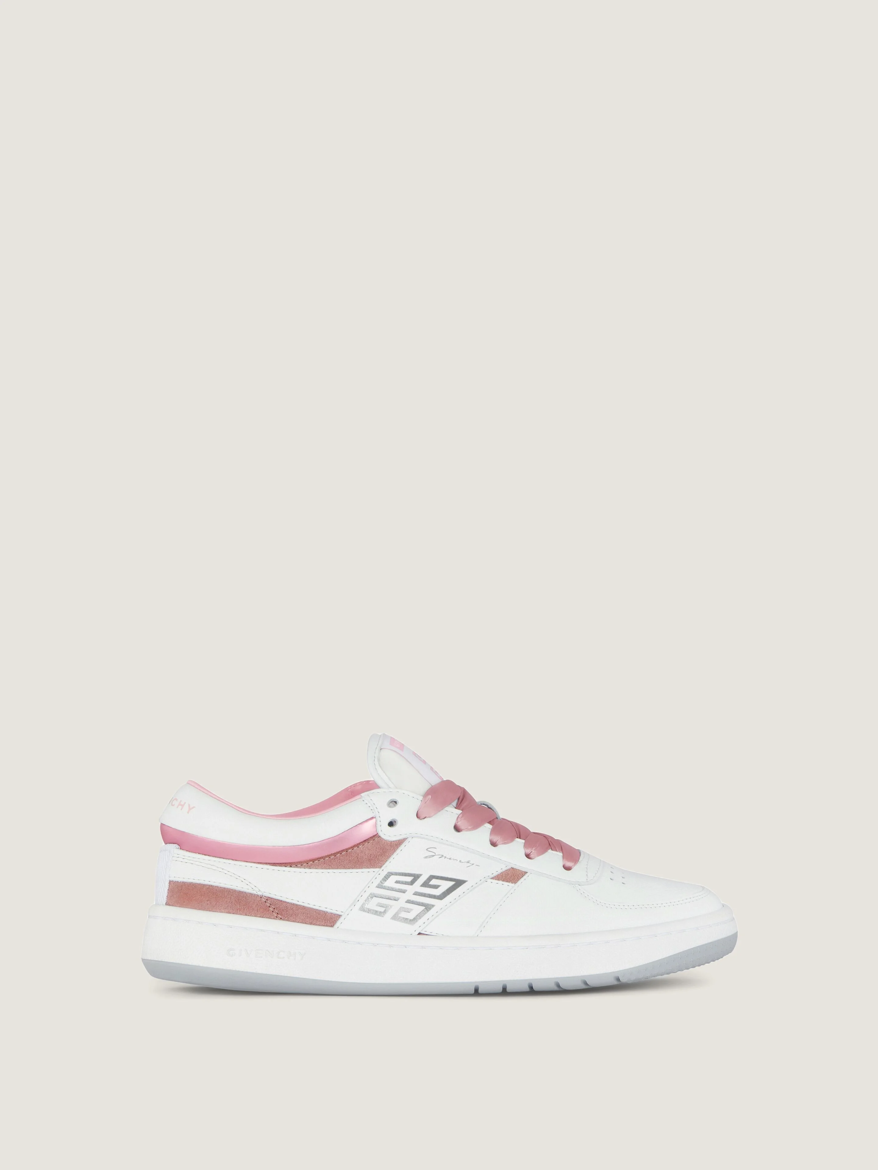 - Low sneakers in leather and laminated leather. - G Move line. - Padded backtop for comfort. - GIVENCHY 4G embroidered label on the tongue. - GIVENCHY signature and 4G emblem debossed on the side. - GIVENCHY signature embossed on the side of the sole. - GIVENCHY signature debossed on the back. - GIVENCHY 4G signature debossed on the leather insole. - Comfortable. - Sold with two pair of laces : shiny nylon laces and classical matching laces.
