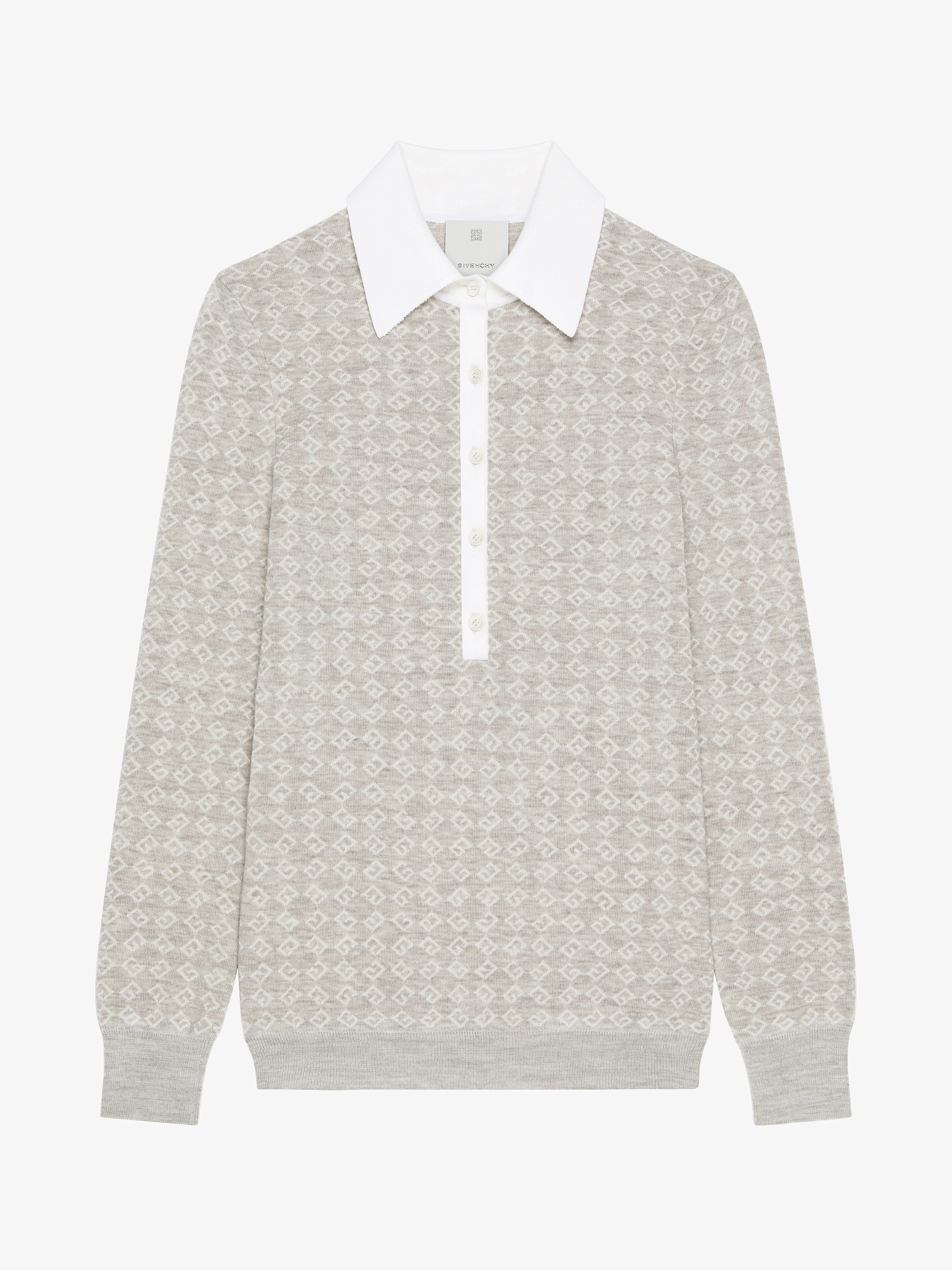 - Long-sleeved polo shirt in wool. - Contrasting polo button-down collar. - Monogram 72 jacquard. - Slim fit. - Model measures 5.8 Feet and wears a size XS.
