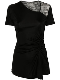 4G-lace draped top Highlights - Black - Stretch-jersey - 4g-lace detail - Asymmetric neck - Short sleeves - Gathered and draped detailing - Straight hem Made in Italy Composition Viscose 100%, Polyamide 92%, Spandex/Elastane 8% SIZE & FIT Model measurements Height 5 ft 10 in(1.78 m) Bust/Chest 31.49 in(80 cm) Hips 37 in(94 cm) Waist 23.62 in(60 cm) FittingInformation Designed for a slim fit that sits just away from the body offering a close yet comfortable fit Made from a midweight stretch fabric, this piece offers elasticity and flexibility when worn This piece fits true to size – take your usual size