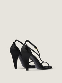 - Heeled sandals in satin. - Naked line. - Thin straps on top and adjustable ankle strap with metal buckle. - GIVENCHY label on the leather insole. - Heel height: 3.7 in.