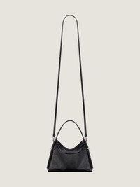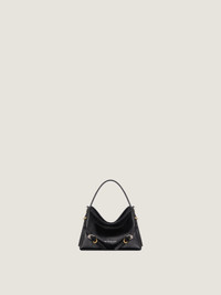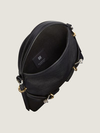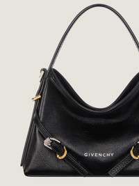 - Nano handbag bag in tumbled calfskin leather. - Voyou line. - Short leather handle. - Thin removable leather strap offering crossbody carrying. - GIVENCHY signature embossed on the front of the bag. - GIVENCHY engraved metal buckles. - Golden and silvery-finish metal details.