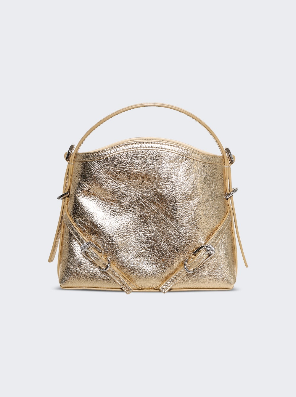 Details - "Voyou" handbag in metallic calfskin leather - Adjustable top handle - Logo-engraved metal buckle accents - One main compartment - Dimensions: approx. 5.5"H x 6.8"W x 1.57"D - Material: 100% Calf leather Brand Style: BB60NHB1ZB279 Designer/Brand: GIVENCHY