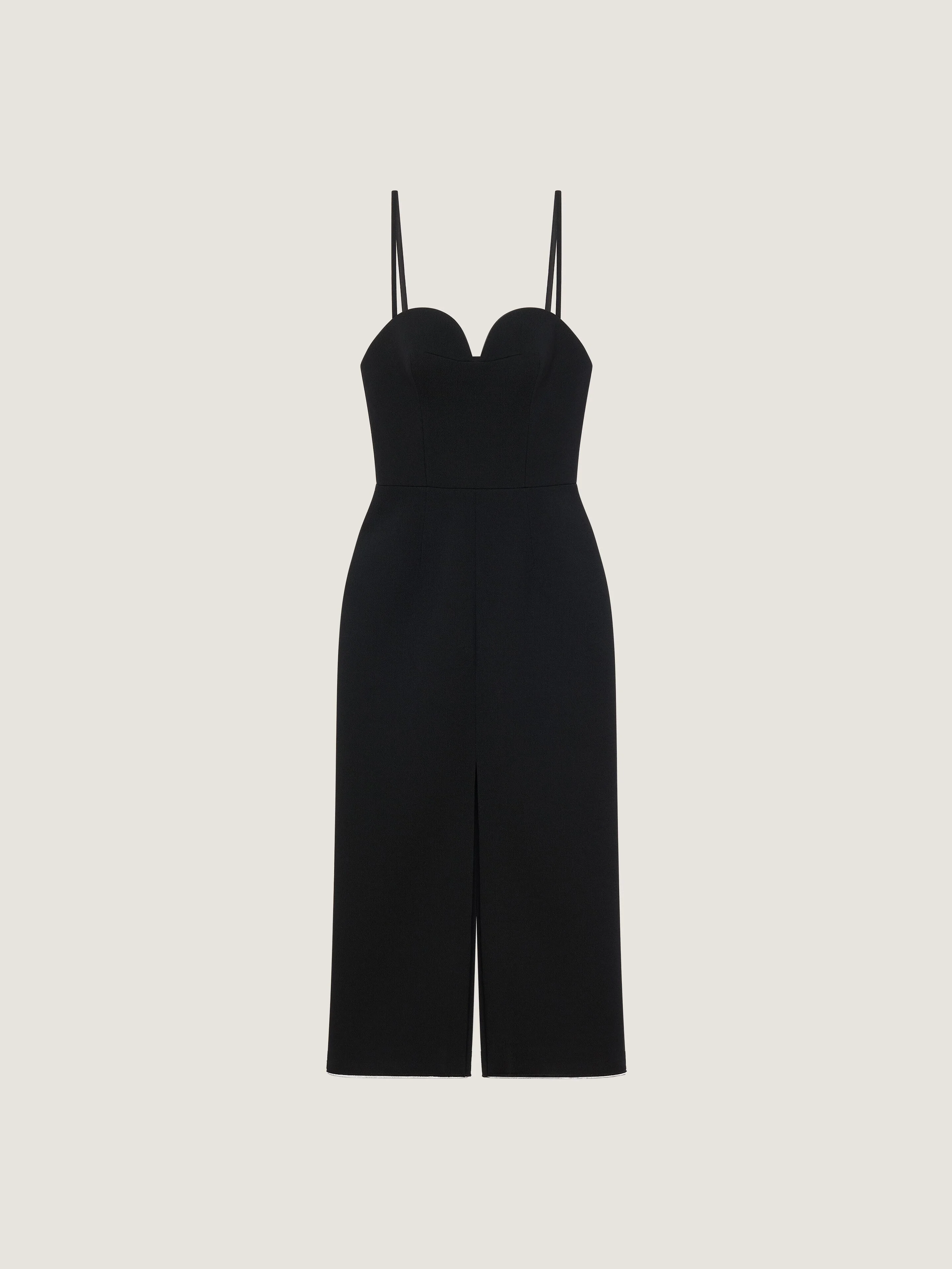- Midi dress in wool crepe. - Sweatheart neckline. - Bullet bra bustier. - Invisible zipped closure on the back. - Front and back slit. - Raw edges at the hem. - Model measures 5.8 Feet and wears a size 36.