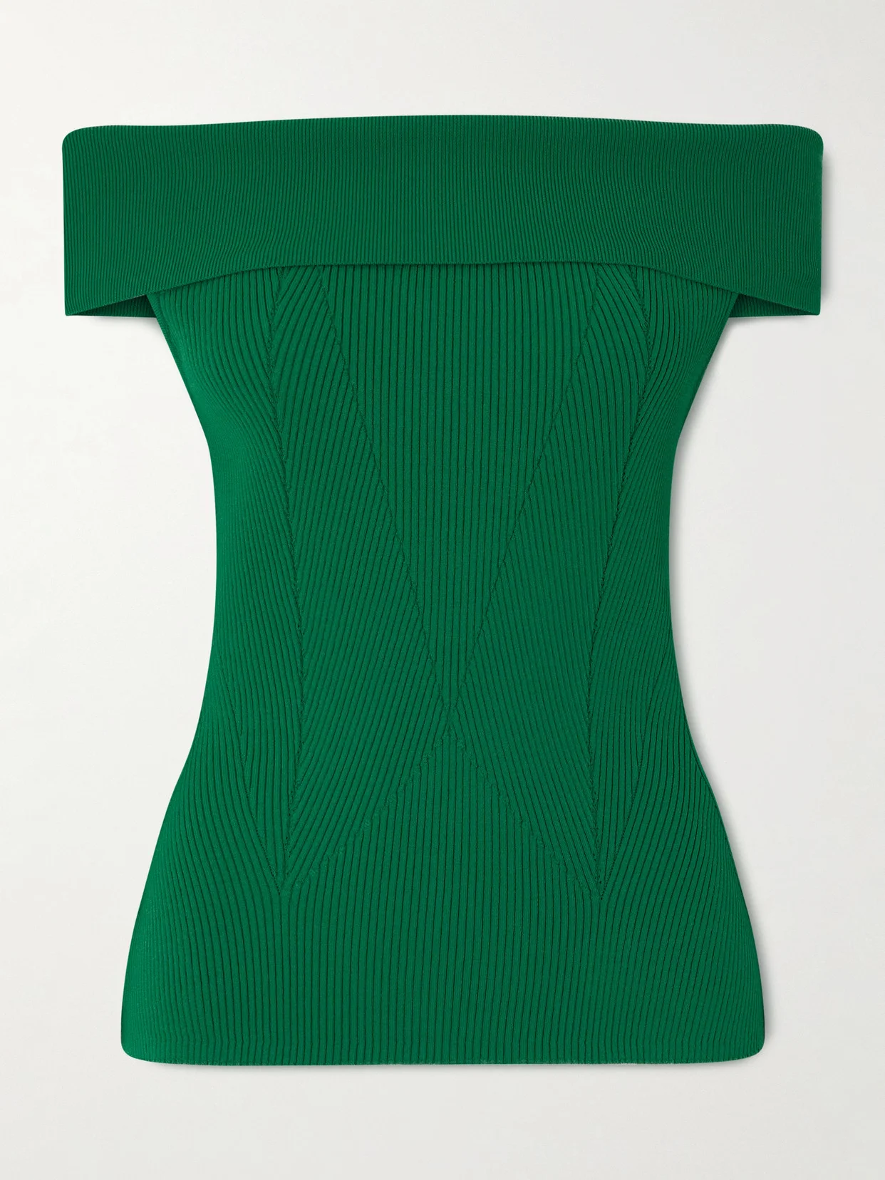Off-the-shoulder Paneled Ribbed-knit Top
