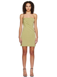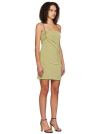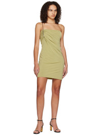 Knit stretch viscose-blend dress. · Single-shoulder construction · Logo graphic box chain shoulder strap · Straight neckline · Ruching at chest and back · Concealed zip closure at outseam · Silver-tone hardware · Full mesh lining Supplier color: Apple green Body: 85% viscose, 12% polyamide, 3% elastane. Lining: 92% polyamide, 8% elastane. Made in Italy 231278F052006