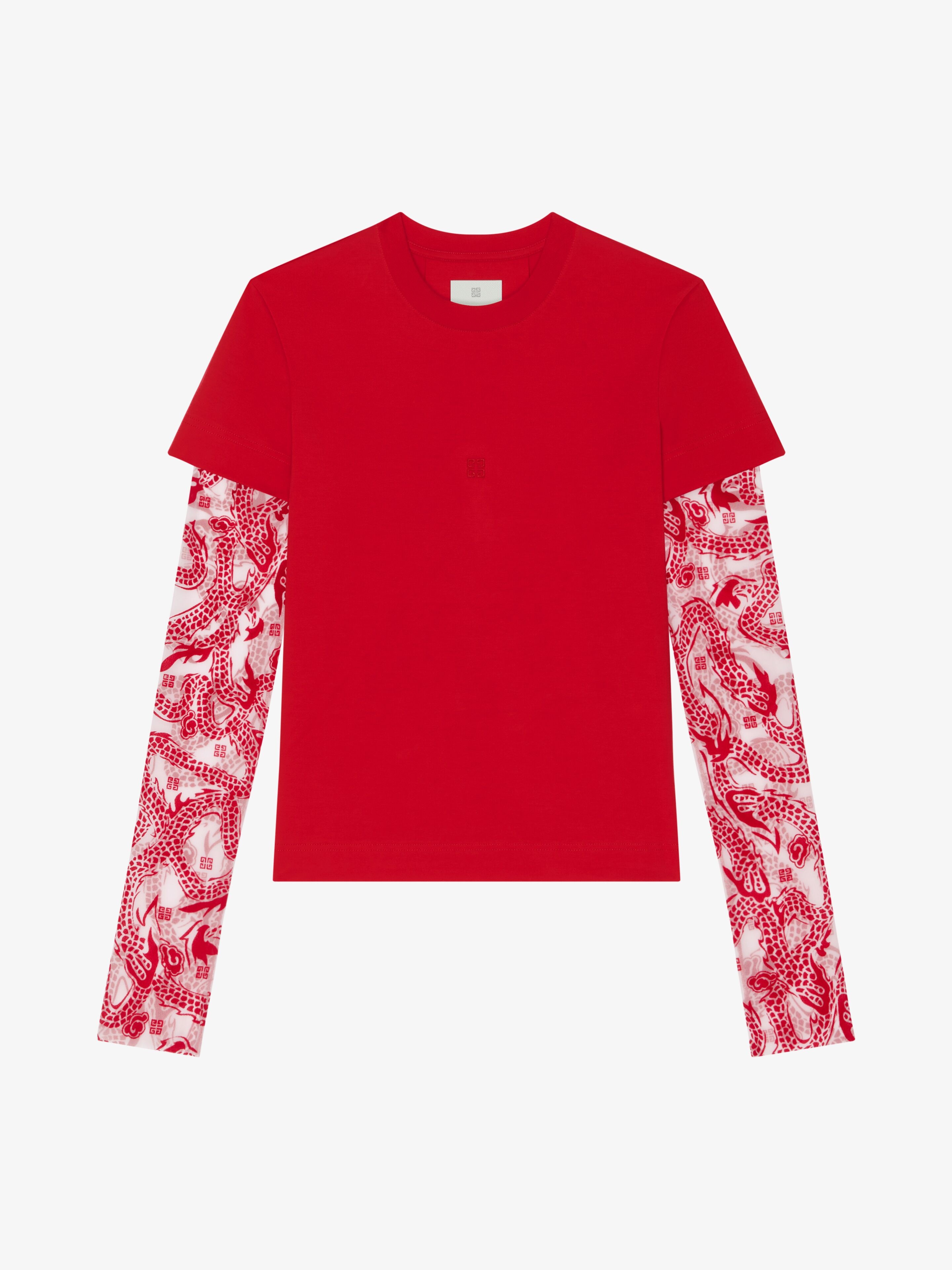 OVERLAPPED T-SHIRT IN COTTON AND 4G DRAGON TULLE