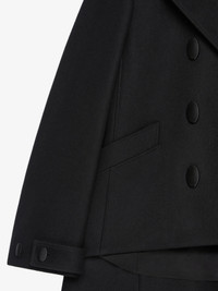 - Short peacoat in wool. - Notch lapel. - Small tone-on-tone 4G emblem embroidered on the left cuff. - Double breasted. - Covered oval buttons. - Buttoned cuffs. - Two side pockets. - Tightening tab on the back. - Oversized fit. - Model measures 5.8 Feet and wears a size 36.