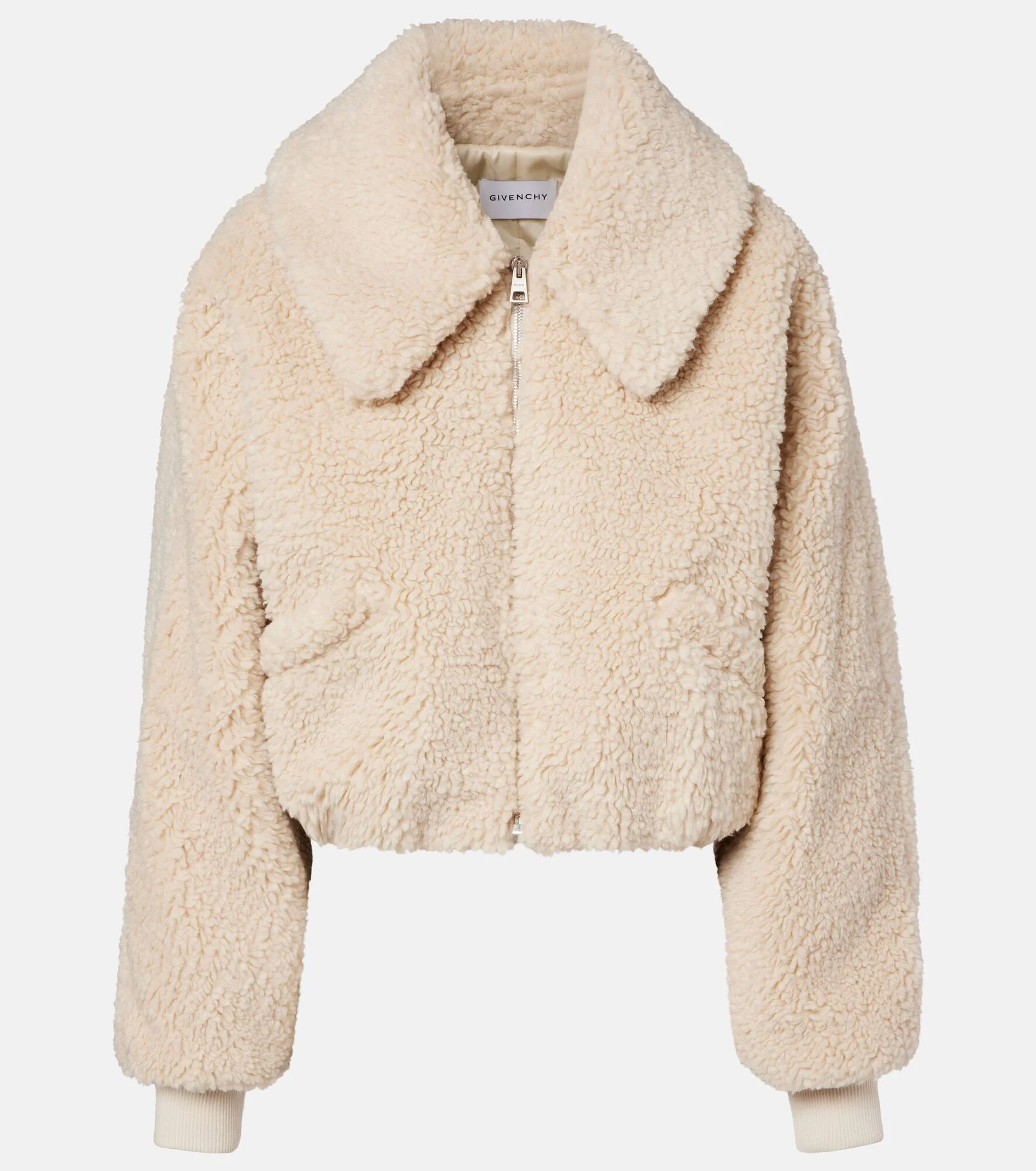 Supreme softness characterizes this Givenchy bomber jacket. Crafted from plush material in a beige hue, this piece features a cozy, slightly oversized silhouette. Product Details - Material: 100% polyester - Care instructions: dry clean - Made in Italy - Color: beige - Designer color name: Natural - Trim: 100% polyester - Lining: 100% cupro - Filling: 100% polyester - Closure: zipped front - Pockets: welt pockets - Item number: P01124920 Size & Fit - True to size - Oversized - Non-stretchy fabric - Cropped - Height of model is 175cm-69" and wears a size FR 36