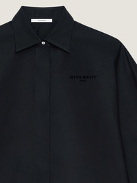 - Long-sleeved shirt in cotton poplin. - Classic collar. - Small GIVENCHY Paris signature embroidered on the chest. - Hidden button closure. - Buttoned cuffs. - Bias seams for a Cocooning volume. - Model measures 5.8 Feet and wears a size 36.