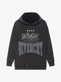 - Oversized hoodie in soft jersey. - Mix of printed and embroidered GIVENCHY signatures on the front and back. - Heat-bonded stars on the front. - Two side pockets.