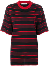 oversized knitted top Infused with the label’s signature dark romanticism and urban styling, French fashion house Givenchy was originally founded in 1952 by acclaimed couturier Hubert de Givenchy. Under the creative direction of Clare Waight Keller, the cult label continues to celebrate the label’s house codes through sharp tailoring and expert craftsmanship. This red oversized knitted top from Givenchy features a ribbed crew neck, dropped shoulders, short sleeves, an embroidered logo to the front, a striped pattern and a long length. Made in Italy Composition Viscose 99%, Polyamide 1% SIZE & FIT Model measurements Height 5 ft 10 in(1.77 m) Bust/Chest 32.28 in(82 cm) Hips 35.82 in(91 cm) Waist 24.8 in(63 cm) Washing instructions Dry Clean Only