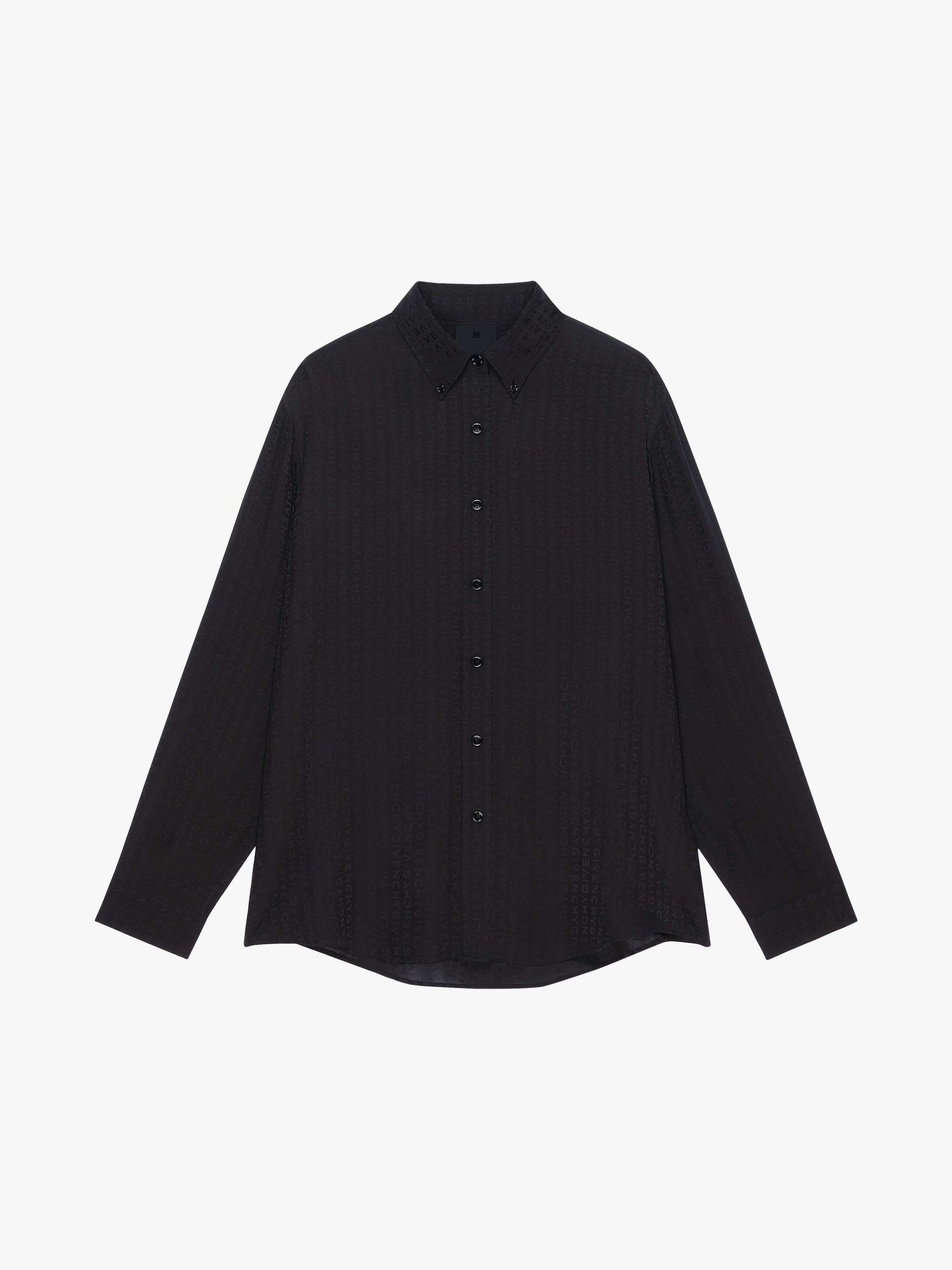 - Shirt in silk jacquard with tone on tone vertical GIVENCHY pattern all over. - Classic button-down collar. - Long sleeves with buttoned cuffs. - Button placket closure. - Oversized fit.