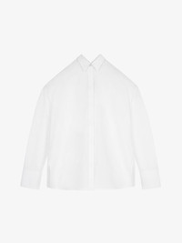 DETAILS - Shirt in cotton poplin. - Color: white. - Draped-effect collar. - Hidden button tab. - Long cuffs. - Oversized fit. - Composition: 100% cotton. - Country of origin: Italy. - Dry clean recommended - Iron at maximum soleplate temperature (110°C) without steam - Do not tumble dry - Do not bleach - Product code: - BW60T4111N-100