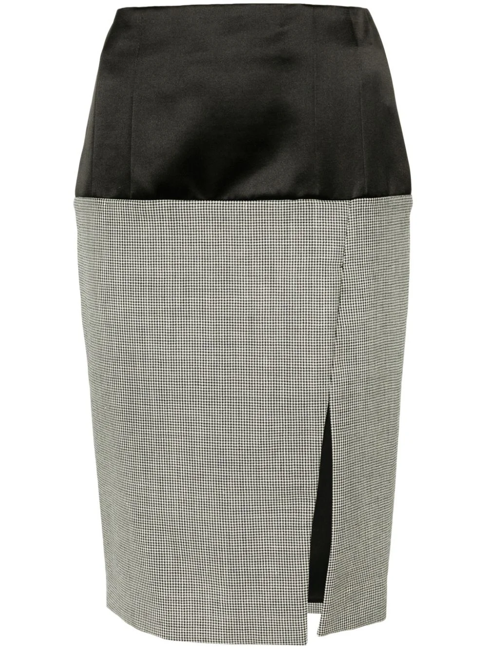 panelled tailored pencil skirt Highlights - Black/white - Wool blend - Panelled design - Houndstooth pattern - Mid-rise - Concealed rear zip fastening - Front slit - Mid-length - Straight hem Made in Italy Composition Outer: Wool 100%, Viscose 72%, Silk 28% Lining: Acetate 73%, Silk 27% SIZE & FIT Model measurements Height 5 ft 11 in(1.8 m) Bust/Chest 31.49 in(80 cm) Hips 36.61 in(93 cm) Waist 24.4 in(62 cm) FittingInformation This midi-length skirt is intended to be worn high on the waist Made from a midweight non-stretch fabric This piece fits true to size – take your usual size
