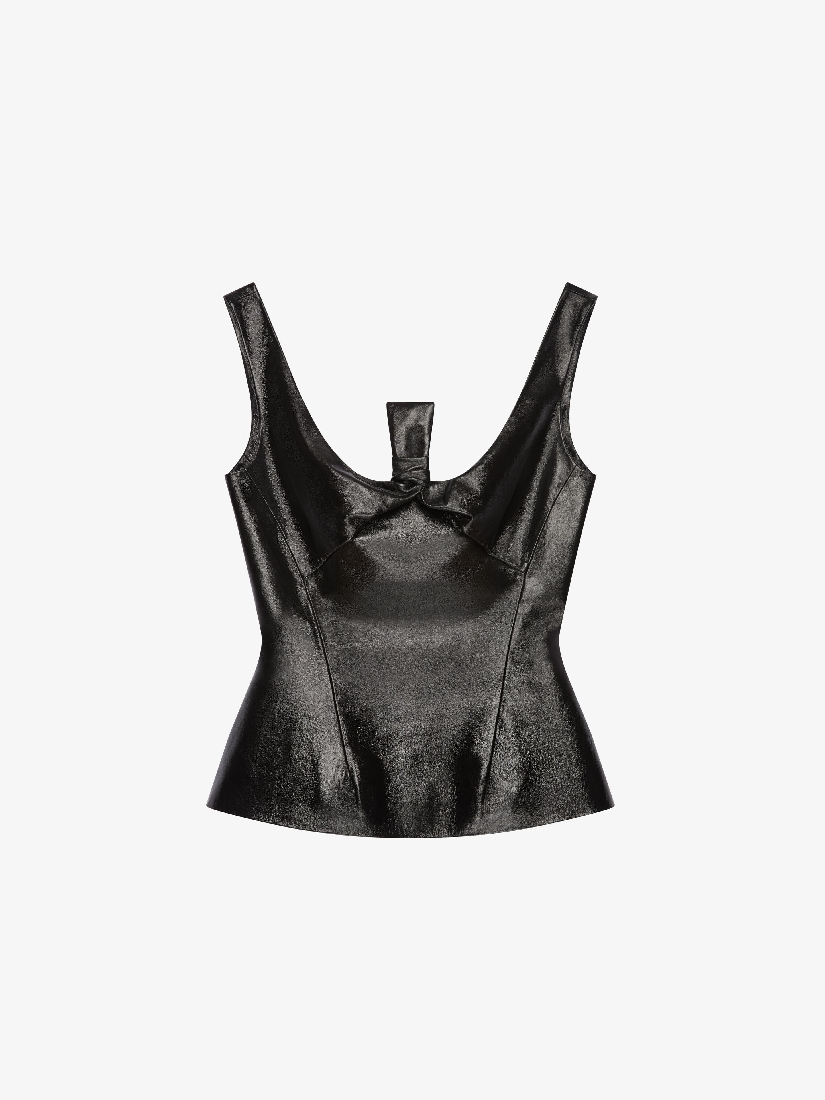 PEPLUM TOP IN LEATHER WITH BOW DETAIL
