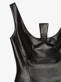 - Peplum top in nappa leather. - Scoop neckline with bow detail. - Invisible zipped closure on the back. - Fitted at the waist. - Model measures 5.8 Feet and wears a size 36.