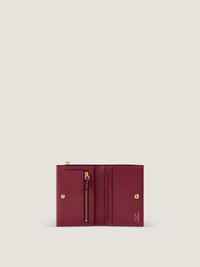 - Bifold wallet in calfskin leather with natural grain and textured finishing. - Pinch line. - Press-button closure. - Golden-finish metal pinch with GIVENCHY engraved. - Golden GIVENCHY Paris signature on the inside. - Contrasted edges. - One zipped coin pocket. - One bill pockets and three card slots.