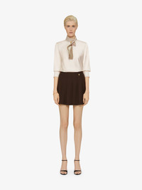 - Short pleated skirt in wool. - Golden-finish 4G Liquid metal piece on the front. - Invisible zipped closure on the side. - Model measures 5.8 Feet and wears a size XS.