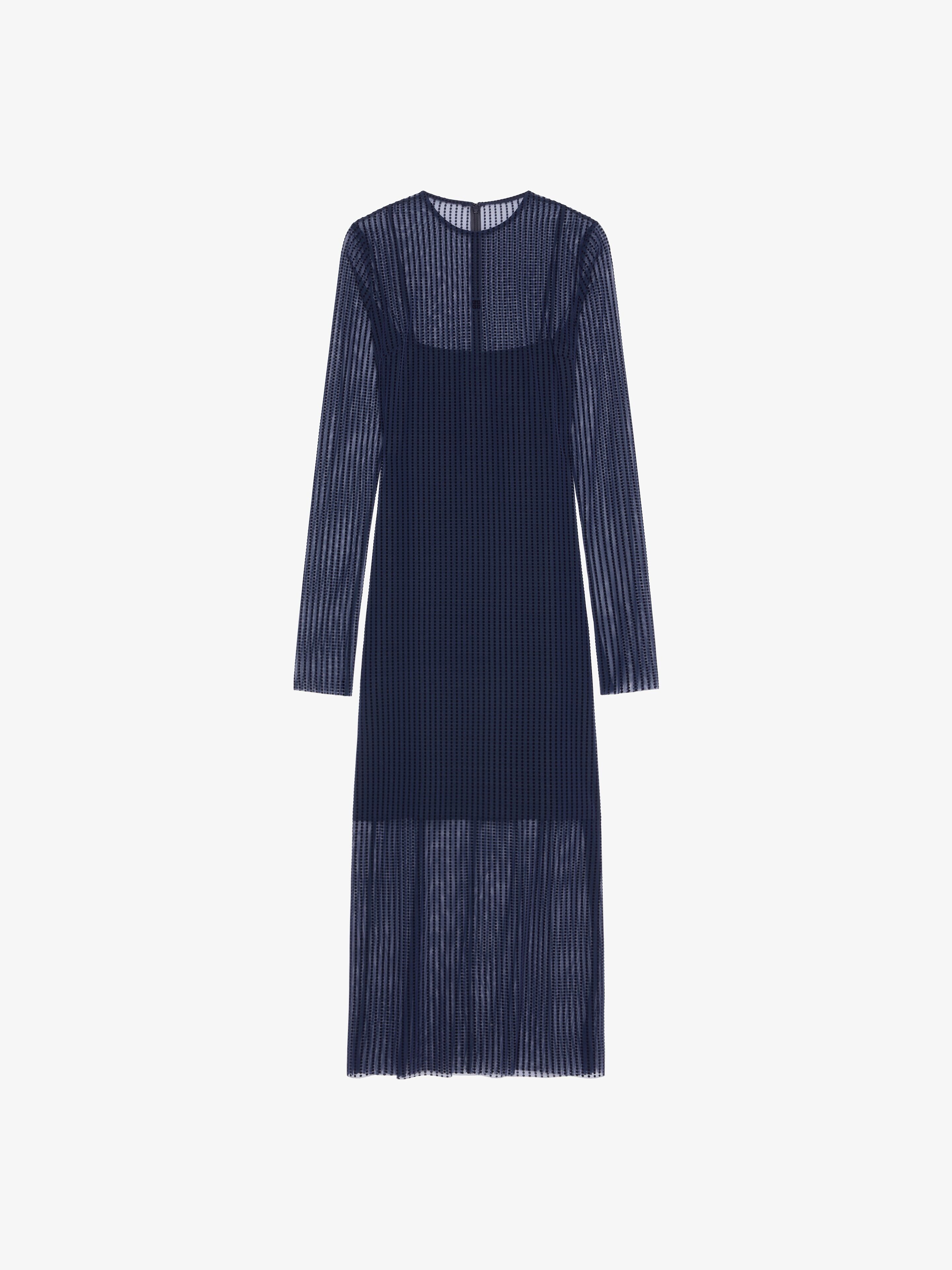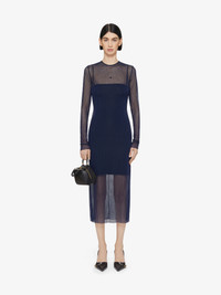 - Midi dress with long sleeves in transparent tulle. - Crew neck. - Polka dots in flocked velvet. - 4G emblem in flocked velvet on the front. - Zipped closure on the back. - Short tone-on-tone jersey under-dress. - Comfortable fitted cut. - Model measures 5.8 Feet and wears a size 36.
