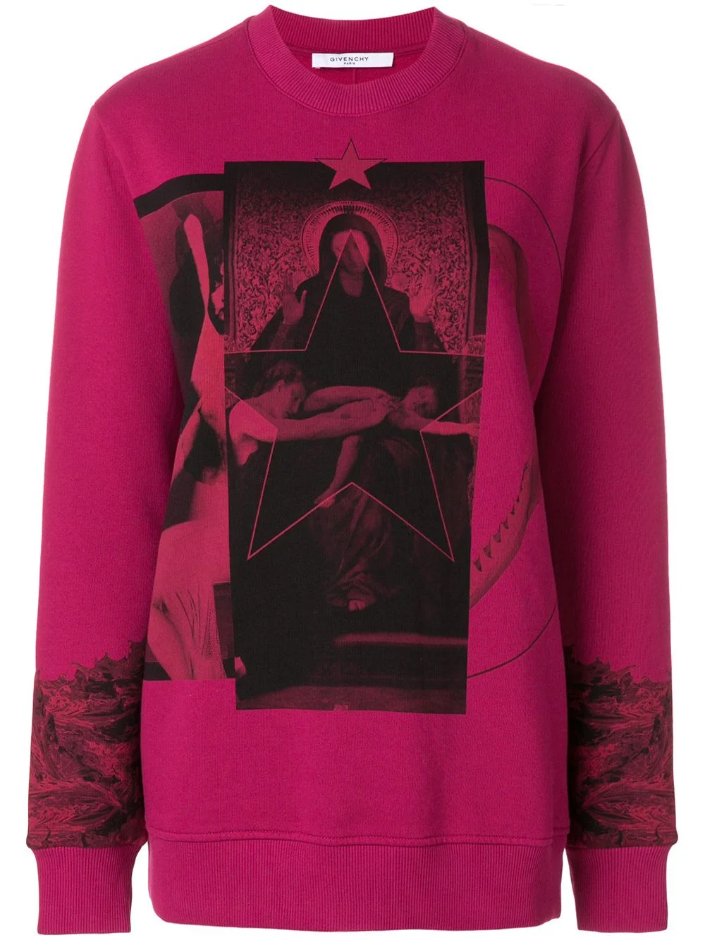 printed sweatshirt Infused with the label’s signature dark romanticism and urban styling, French fashion house Givenchy was originally founded in 1952 by acclaimed couturier Hubert de Givenchy. Under the creative direction of Clare Waight Keller, the cult label continues to celebrate the label’s house codes through sharp tailoring and expert craftsmanship. This pink cotton printed sweatshirt from Givenchy features a crew neck, long sleeves, a ribbed hem and cuffs and a print to the front. Imported Composition Cotton 100% SIZE & FIT Model measurements Height 5 ft 10 in(1.77 m) Bust/Chest 35.03 in(89 cm) Hips 36.22 in(92 cm) Waist 25.98 in(66 cm) Washing instructions Machine Wash