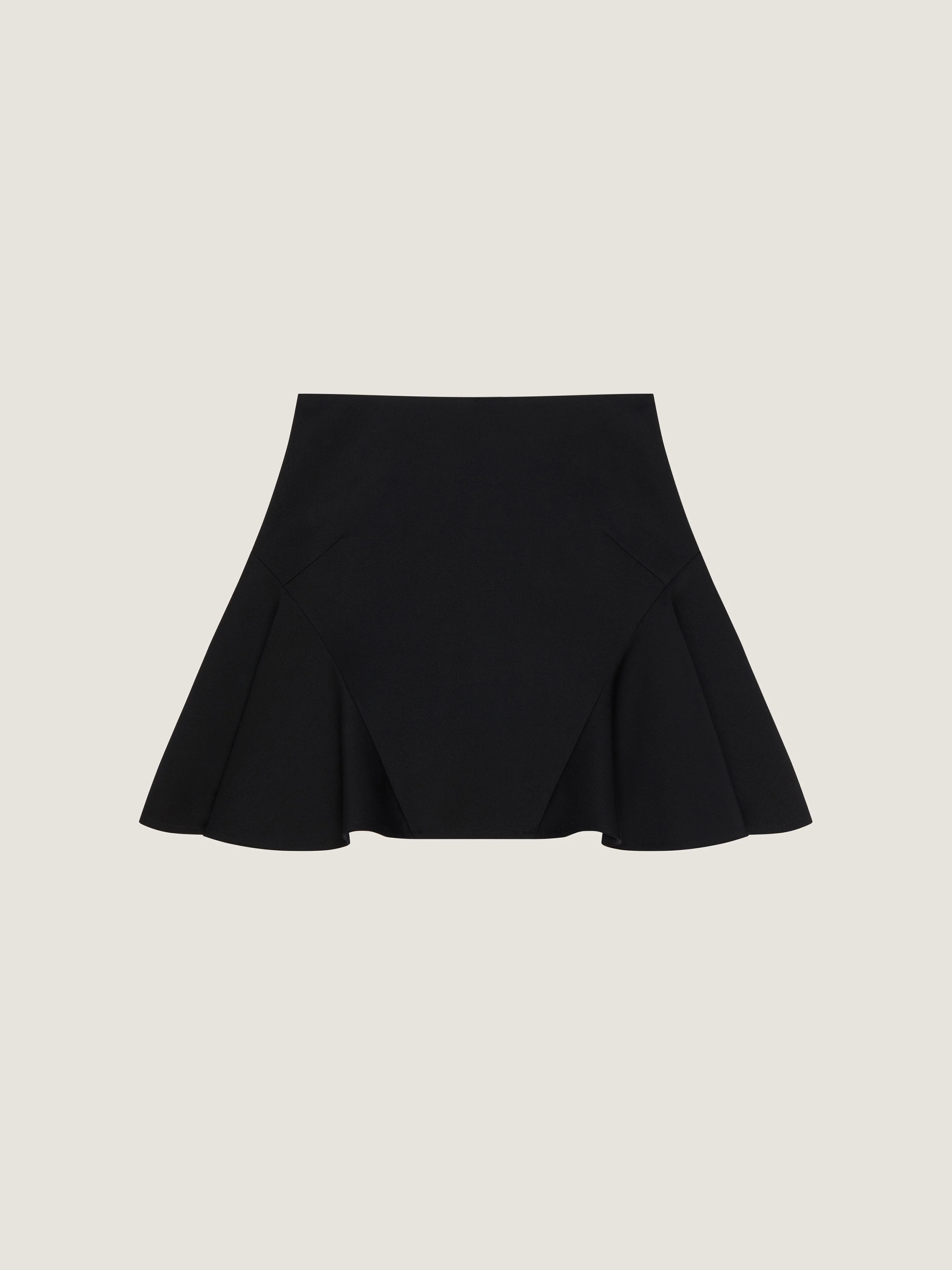 - Mini skirt in grain de poudre wool. - Ruffles with volume. - Invisible zipped closure on the back.