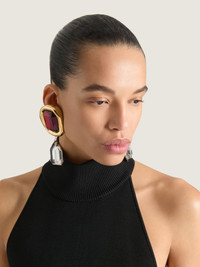- Pendant clip earrings in golden-finish metal with colored crystals. - Sculptural Crystal line. - GIVENCHY signature engraved on the back. - Sold by pair. - Matching cuff bracelet and ring sold separately. - Weight per unit: 73g.
