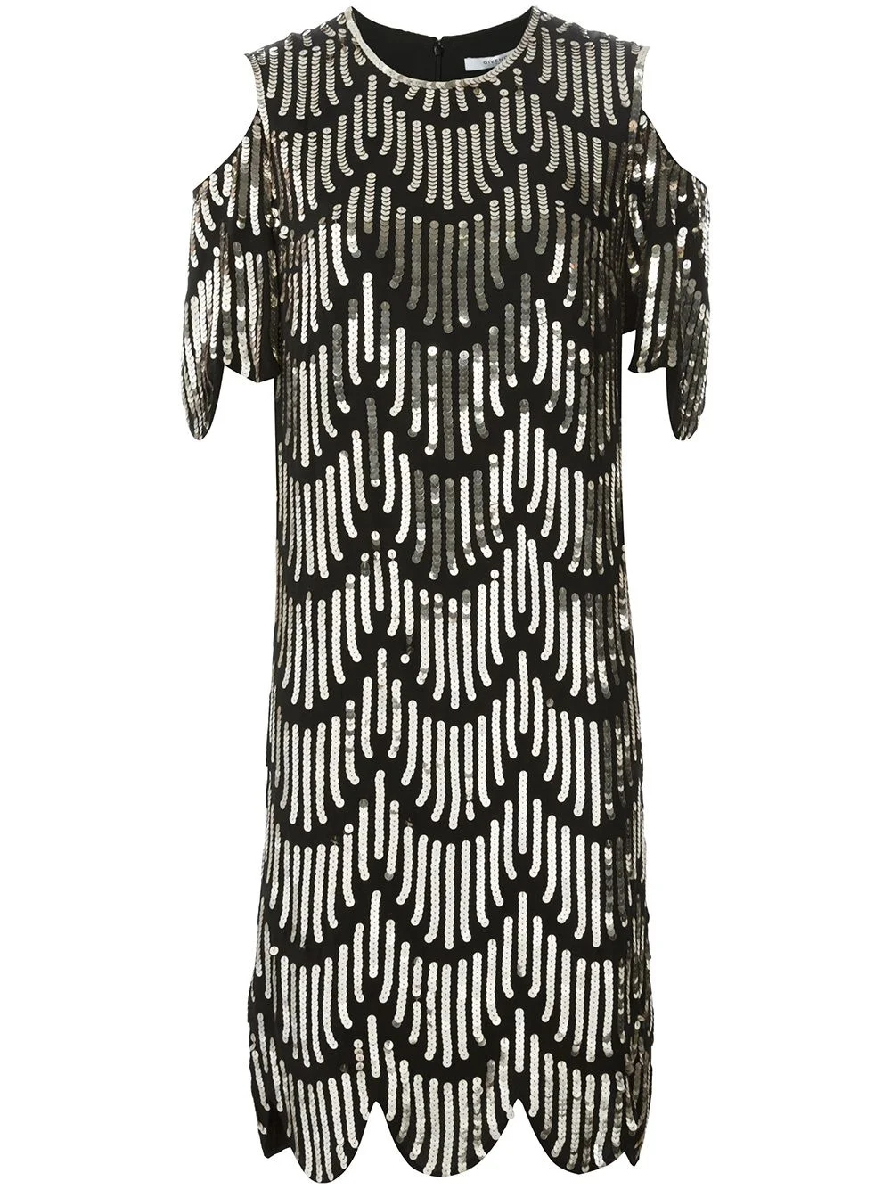 sequin embellished cocktail dress Black silk cocktail dress from Givenchy featuring a round neck, a cut out detail, short sleeves, a loose fit, sequin embroidery, a curved hemline and a back zip fastening. Made in France Composition Sequin 100% Lining: Silk 100% SIZE & FIT Model measurements Height 5 ft 11 in(1.8 m) Bust/Chest 31.88 in(81 cm) Hips 35.03 in(89 cm) Waist 25.19 in(64 cm) Washing instructions Dry Clean Only