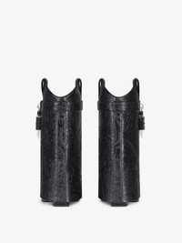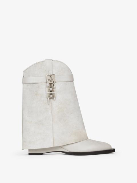 - Slip-on ankle boots in calfskin leather with western flower pattern. - Shark Lock Cowboy line. - Leather band featuring GIVENCHY metal clasp and silvery-finish leather covered 4G padlocks. - Almond-toe boots. - Covered wedge heels. - Heel height: 2.4 in.