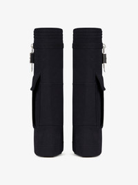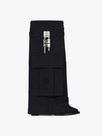 - Slip-on high boots in fleece. - Shark Lock Cowboy line. - Cotton band featuring GIVENCHY metal clasp, silvery-finish leather covered 4G padlocks. - One flap pocket on the side. - Almond-toe boots. - Leather lining. - Covered wedge heels. - Heel height: 2.4 in.