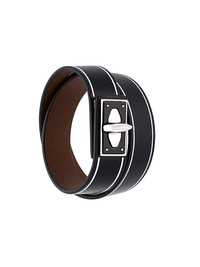 'Shark Tooth' bracelet Black calf leather 'Shark Tooth' bracelet from Givenchy featuring a silver-tone twist lock fastening and a contrasting white trim. Made in Italy SIZE & FIT Measurement WIDTH 0.62 in(1.6 cm) TOTAL LENGTH 14.56 in(37 cm)