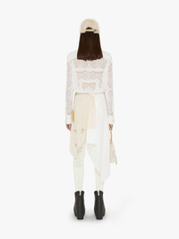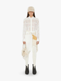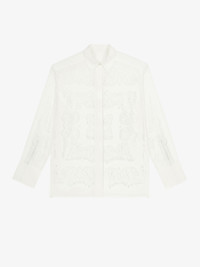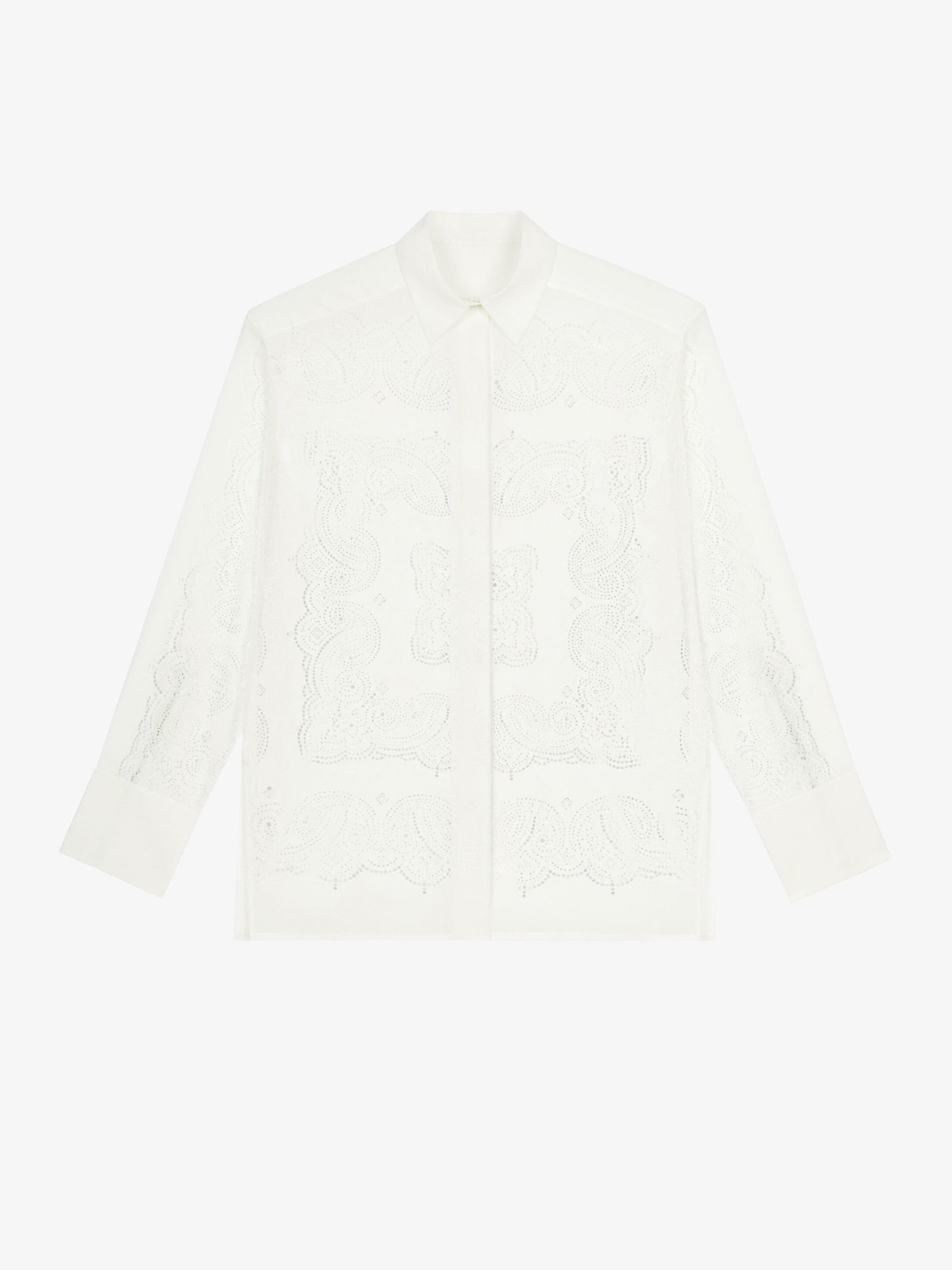- Shirt in loose-fitting synthetic crepe de chine. - Color: white. - All-over laser-perforated bandana motif. - Metal zippers on the cuffs. - Hidden button tab. - Comfortable fitted cut.