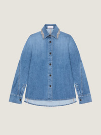 - Long-sleeved shirt in washed denim. - Classic collar with embroidered crystals. - Button closure. - Buttoned cuffs. - Bias seams for a cocooning volume. - Model measures 5.8 Feet and wears a size 36.