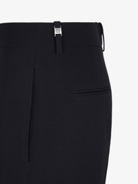 Short masculine-style pants in black lightweight wool with small metal piece with a 4G emblem on one belt loop. Two side pockets and two back welt pockets. Product code: BW50M612JF-001 Composition: 100% virgin wool. Size & Fit Model wears a size 36. Model size: chest 80 cm, waist 60 cm, hips 80 cm, height 178 cm. Other Country of origin: Italy. Dry clean recommended Iron at maximum soleplate temperature (110°C) without steam Do not tumble dry Do not bleach Dry clean using perchlorethylene and hydrocarbons, delicate cycle
