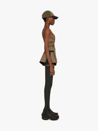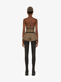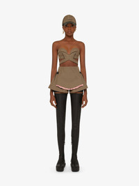 SHORTS IN TECHNICAL FIBER WITH APRON EFFECT AND BRODERIE ANGLAISE