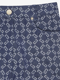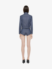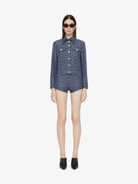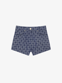 - The Monogram 72, composed of four interlocking Gs forming a diamond shape, is reimagined on denim with a subtle jacquard contrast, in varying shades of blue. - Mini shorts in monogram 72 denim. - Waist with loops, zipped and button closure. - Two front pockets. - Two back pockets. - Slim fit. - Model measures 5.8 Feet and wears a size 26.