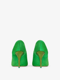 - Pumps with squared toe in lamb hair. - Show line. - Décolleté. - Thin heel. - Leather insole with silvery-finish metal 4G piece. - Heel height : 3.8 in.