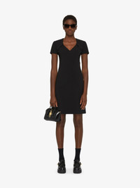 - Short dress with short sleeves in Punto Milano. - V neck. - Golden 4G engraved buttons on the side. - Invisible zipped closure on the back. - Fitted cut. - Model measures 5.8 Feet and wears a size 36.