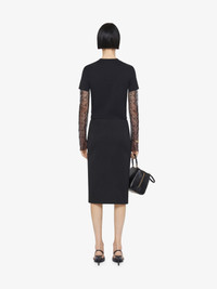 - Mid-length skirt in grain de poudre wool. - Silvery-finish 4G Liquid metal button closure on the front. - Slit on the front. - Straight cut. - Model measures 5.8 Feet and wears a size 36.
