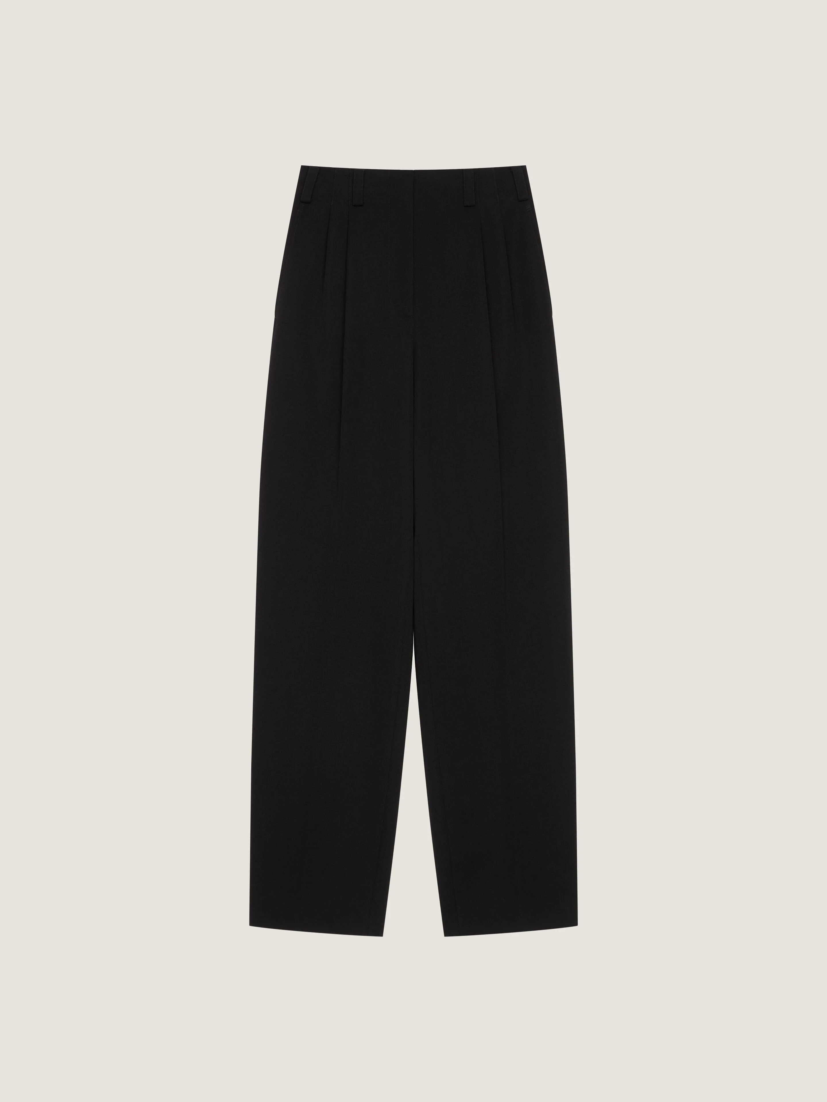 - Double pleat pants in grain de poudre wool. - Elastic band on the back. - Slash detailing. - Zipped closure with hook. - Two side pockets. - One back pocket. - Model measures 5.8 Feet and wears a size 36.
