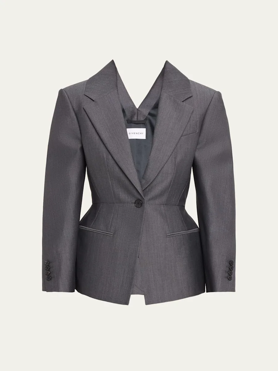 Slashed Wool Single-Breasted Jacket