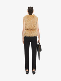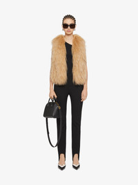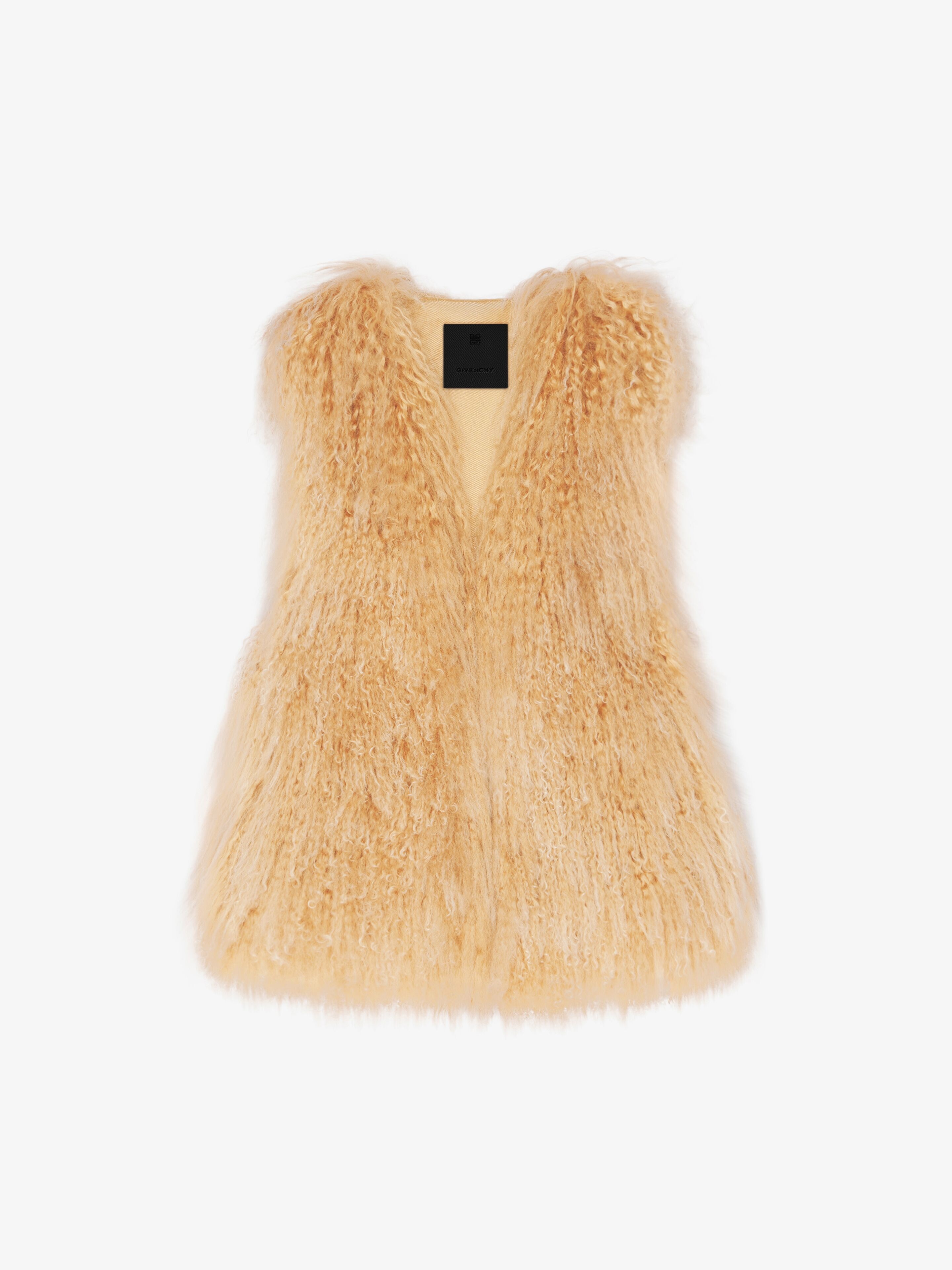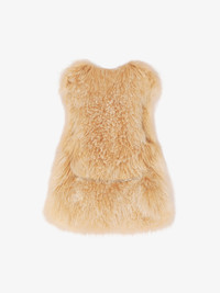 - Sleeveless jacket in mongolia lamb fur. - V neck. - Hook fastener. - Removable metal G chain on the lower back. - Model measures 69.7 in and wears a size 36.