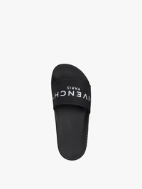 - Vegan flat sandals in rubber. - Color: Black. - Raised GIVENCHY PARIS signature. - Comfortable molded sole.